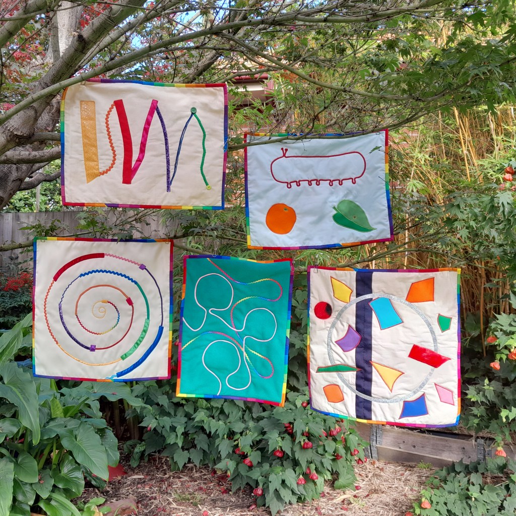 “These quilts are wonderful open-ended resources where imagination is the only limit! They can promote all sorts of discussion and vocabulary around textures, sounds, visuals, object permanence and more – plus opportunities for problem-solving and creativity in how to use each quilt. The options are endless and they could be a real boon in the therapeutic setting, and for young children generally.” Kate Morgan