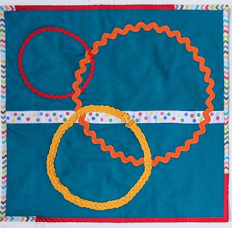 Embellishment: 1 & 3cm ric rac, plaited acrylic yarn, ribbon