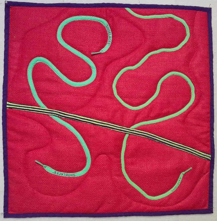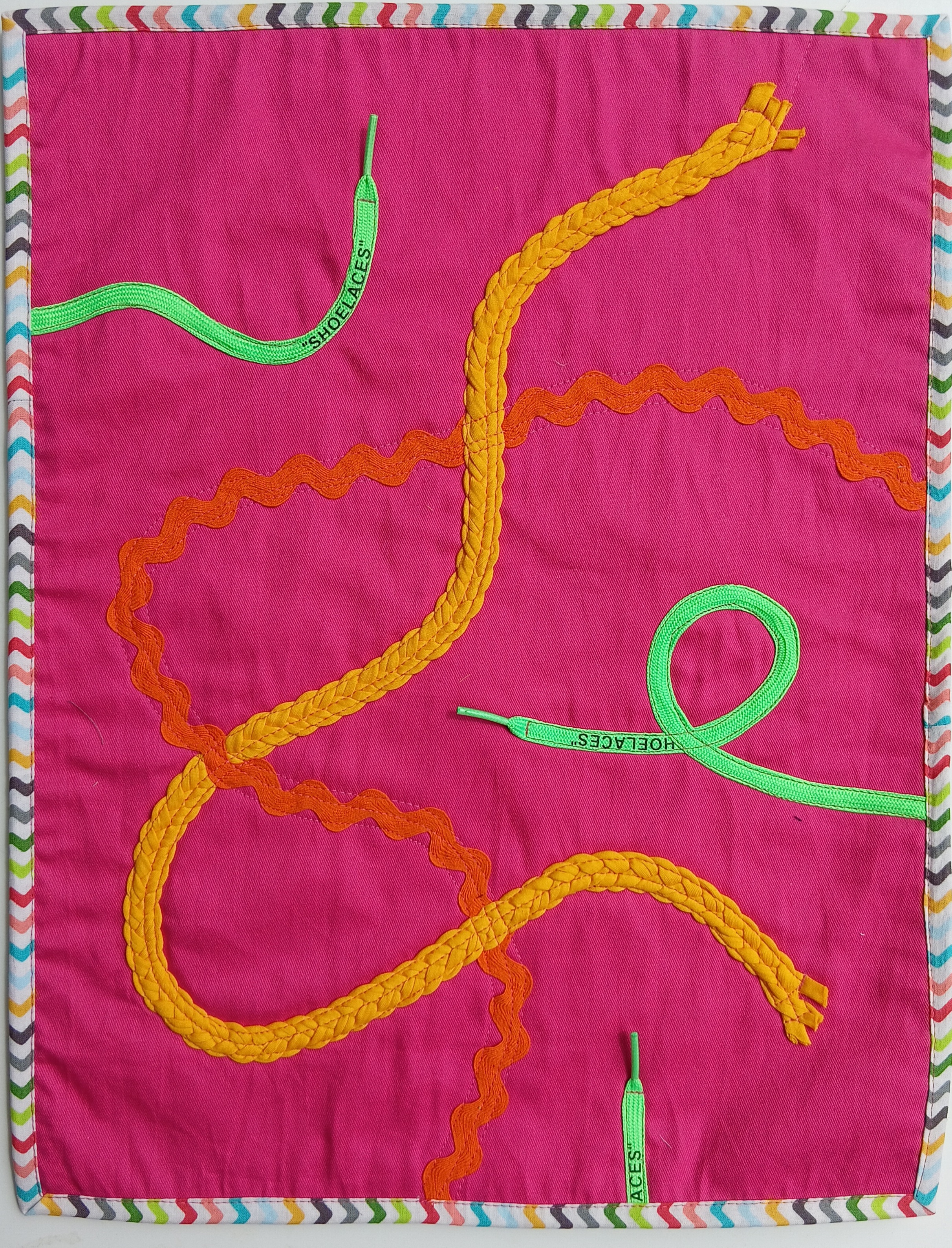 Embellishments: ric rac, shoelaces, plaited jersey knit binding tape