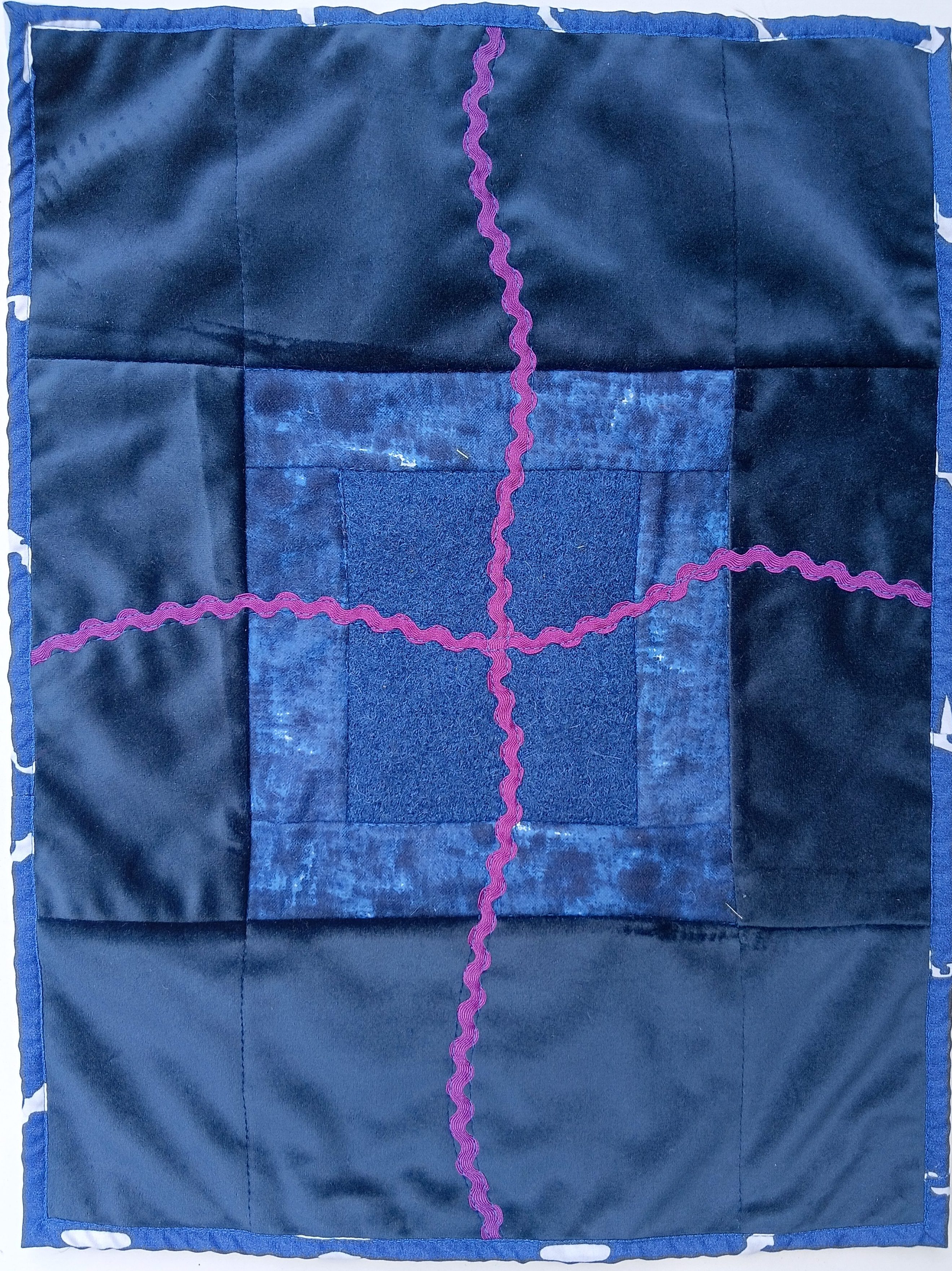 - If you are using mixed/heavy fabrics, as in the dark blue quilt (velvet, flannelette, felted wool), I think it is easier to sew it “quilt as you go” to avoid the hassles of ironing such different fabrics. The seams can be top-stitched if they don’t sit flat.