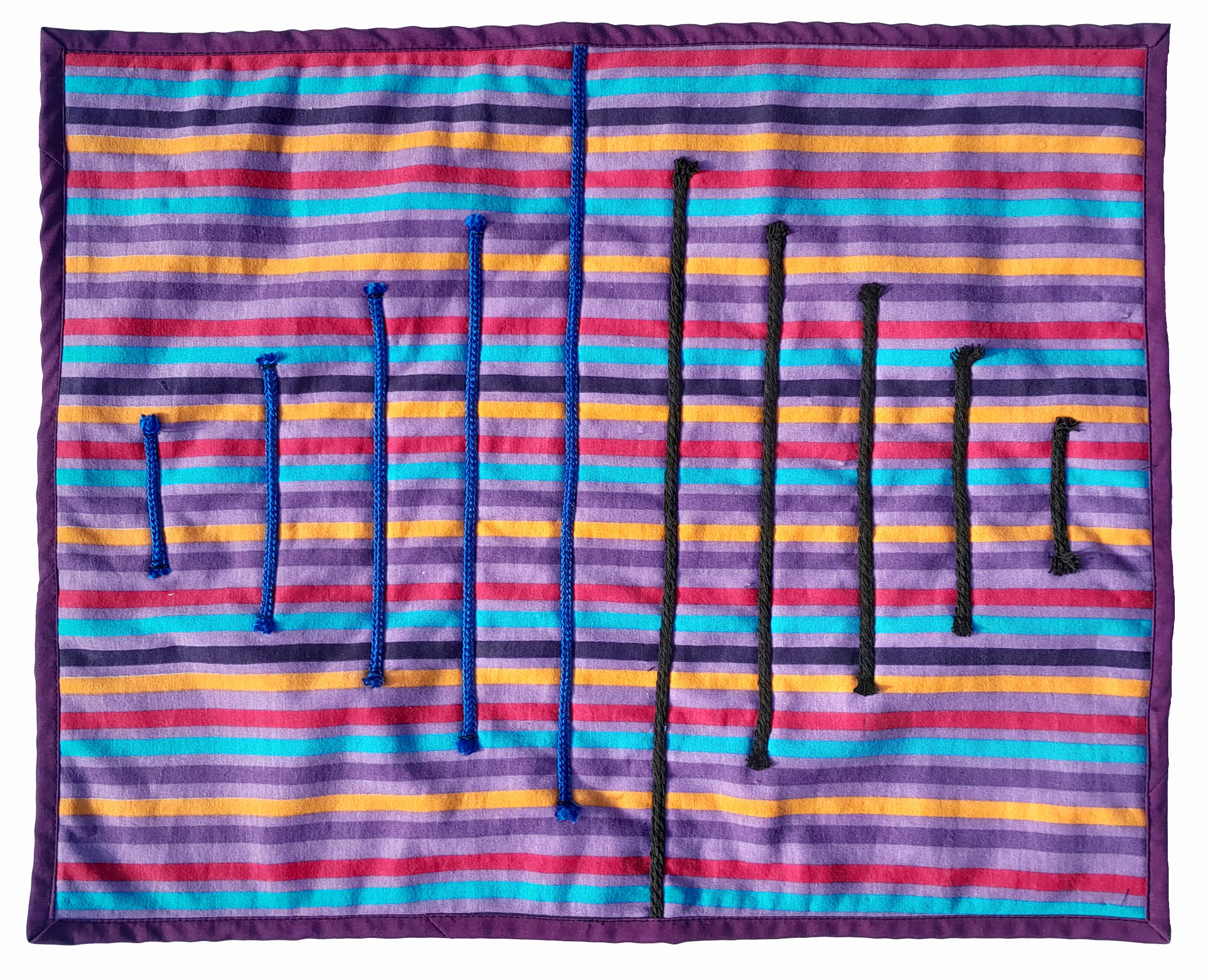 - Stitch the cord on Stripes 2 in an arrangement of your choice. The ends of the cord are left free to make small tufts.